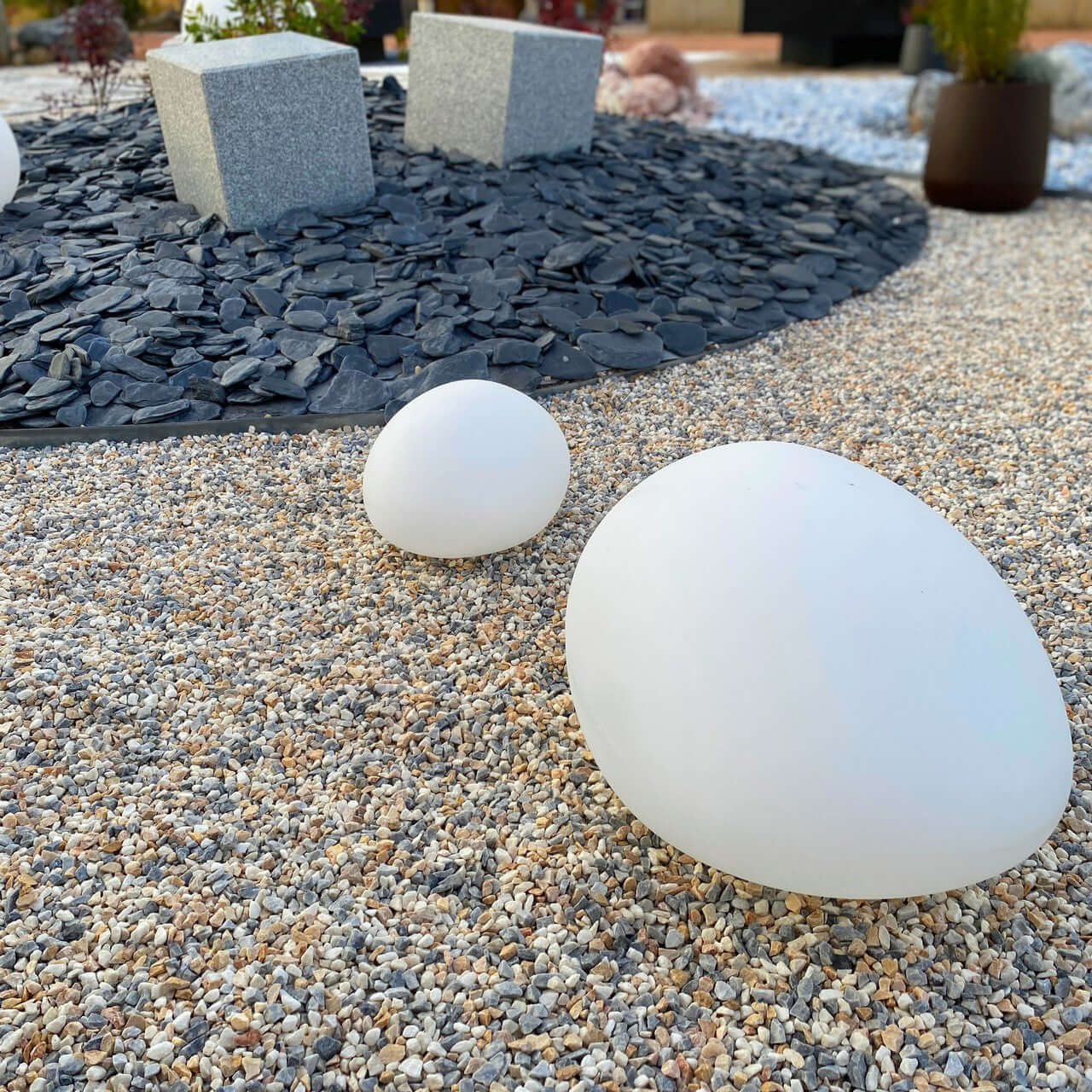 • piedra blanca jardin, gravas blancas y cantos rodados blancos